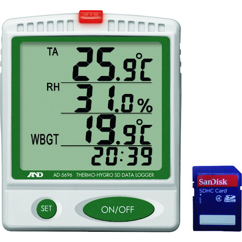 藤野優勢供應日本&D艾安得股份有限公司產品項目:天平、重量顯示器、ORIENTEC,A&D荷重元、黏度計、萬能試驗機、標準法碼、防震臺、Pipette分注器、離心機、旋光度計、屈折度計、糖鹽度計、分光光度計、溫濕度計.可以將特長溫度、濕度、中暑指數WBGT、年月日、時間記錄在SD卡上。(以文本形式保存數據等,可以簡單地在電腦上處理。)可以設定溫度、濕度、中暑指數WBGT的上限和下限警報。用蜂鳴器聲